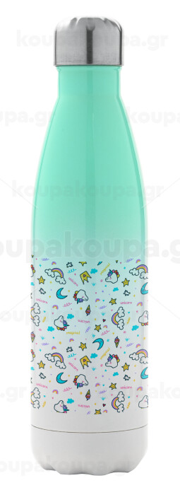 Unicorn pattern white, Metal mug thermos Green/White (Stainless steel), double wall, 500ml