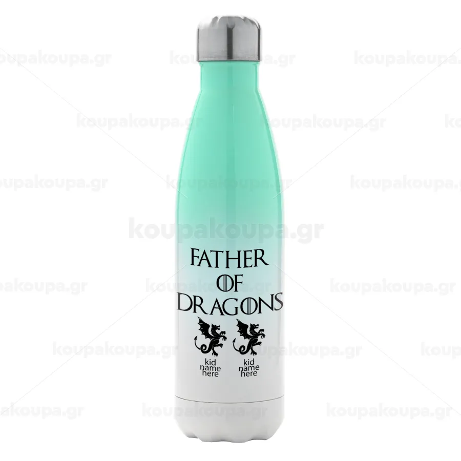 GOT, Father of Dragons (με ονόματα παιδικά), Metal mug thermos Green/White (Stainless steel), double wall, 500ml
