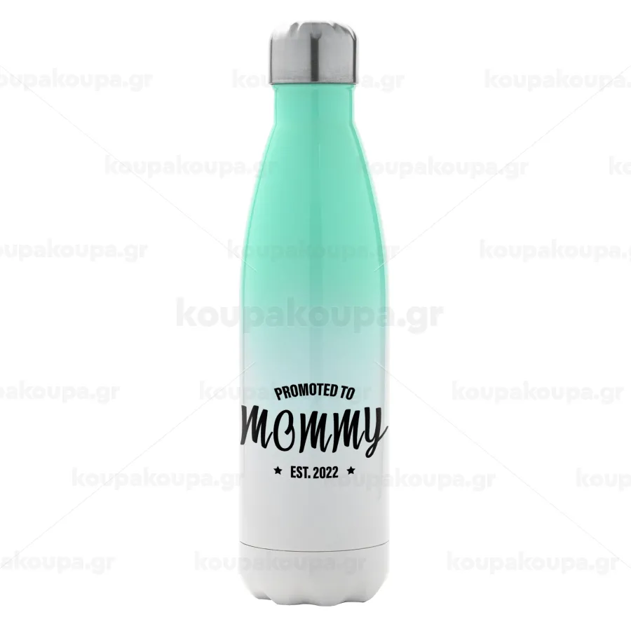 Promoted to Mommy, Metal mug thermos Green/White (Stainless steel), double wall, 500ml