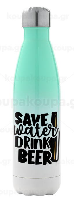 Save Water, Drink BEER, Metal mug thermos Green/White (Stainless steel), double wall, 500ml