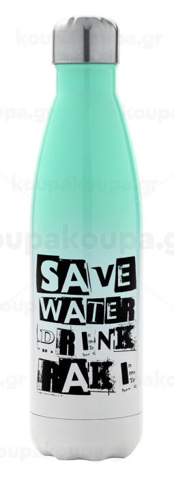 Save Water, Drink RAKI, Metal mug thermos Green/White (Stainless steel), double wall, 500ml