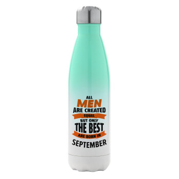 All men are created equal but only the best are born in September, Metal mug thermos Green/White (Stainless steel), double wall, 500ml