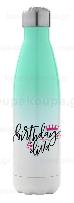 Birthday Diva queen, Metal mug thermos Green/White (Stainless steel), double wall, 500ml