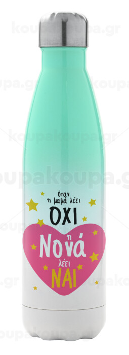 Η νονά λέει ναι!!!, Metal mug thermos Green/White (Stainless steel), double wall, 500ml