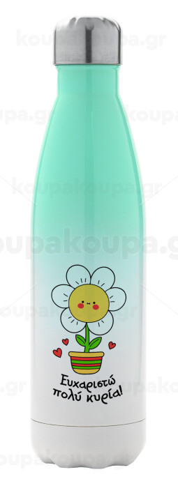 Ευχαριστώ πολύ κυρία!!!, Metal mug thermos Green/White (Stainless steel), double wall, 500ml