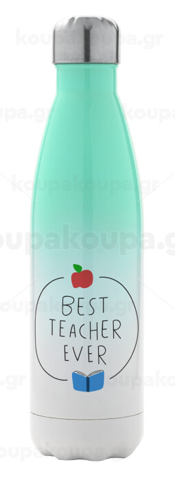 Best teacher ever, Metal mug thermos Green/White (Stainless steel), double wall, 500ml