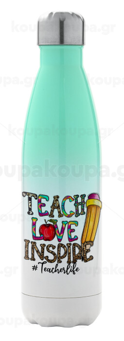 Teach, Love, Inspire, Metal mug thermos Green/White (Stainless steel), double wall, 500ml