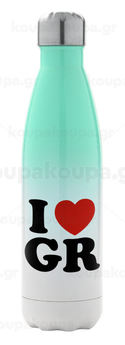 I Love GR, Metal mug thermos Green/White (Stainless steel), double wall, 500ml