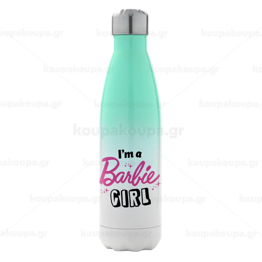 I'm Barbie girl, Metal mug thermos Green/White (Stainless steel), double wall, 500ml