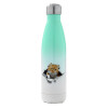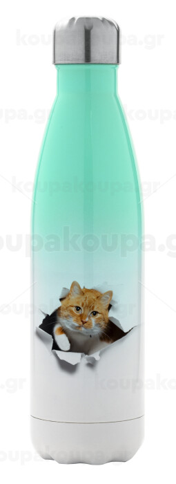 Cat cracked, Metal mug thermos Green/White (Stainless steel), double wall, 500ml