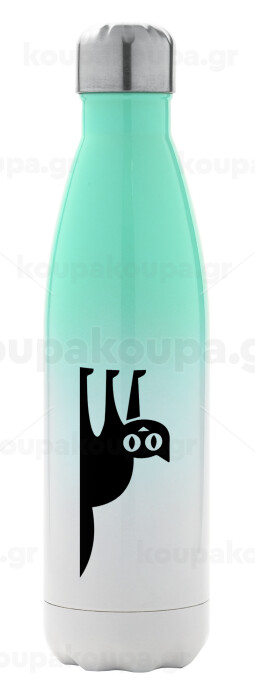 Cat upside down, Metal mug thermos Green/White (Stainless steel), double wall, 500ml