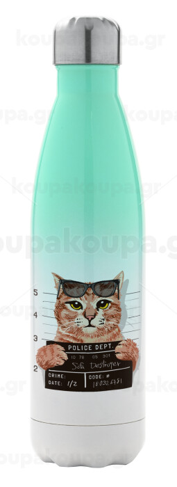 Cool cat, Metal mug thermos Green/White (Stainless steel), double wall, 500ml