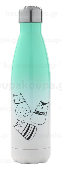 Cute cats, Metal mug thermos Green/White (Stainless steel), double wall, 500ml