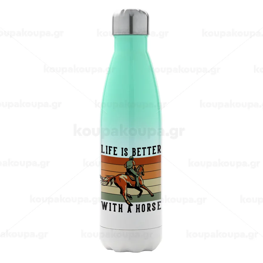 Life is Better with a Horse, Metal mug thermos Green/White (Stainless steel), double wall, 500ml