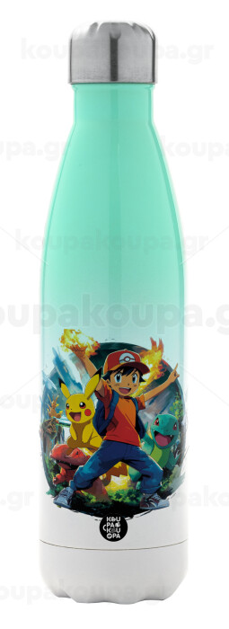 Ash Ketchum & Pikachu, Metal mug thermos Green/White (Stainless steel), double wall, 500ml