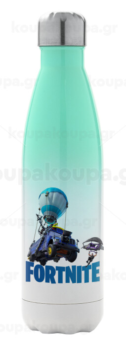 Fortnite Bus, Metal mug thermos Green/White (Stainless steel), double wall, 500ml