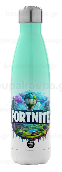 Fortnite land, Metal mug thermos Green/White (Stainless steel), double wall, 500ml