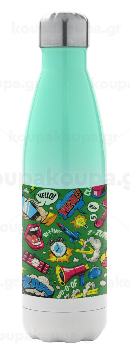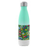 Pop art colorful seamless, Metal mug thermos Green/White (Stainless steel), double wall, 500ml