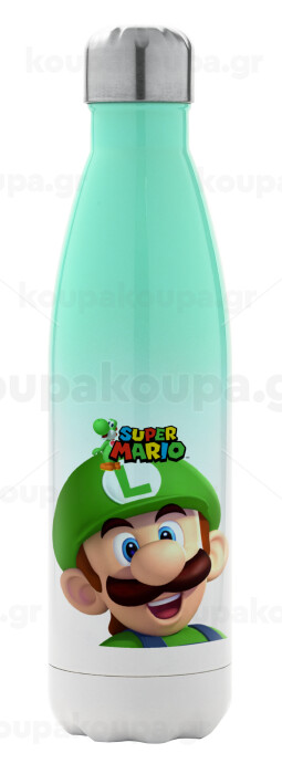 Super mario Luigi, Metal mug thermos Green/White (Stainless steel), double wall, 500ml