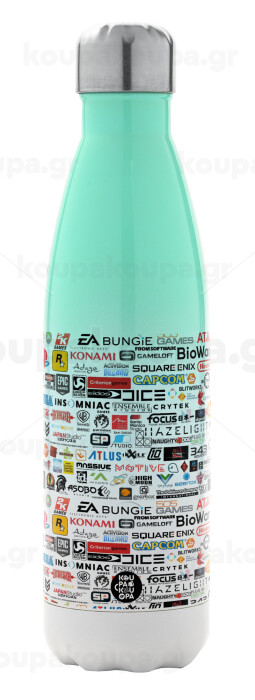 Video Game Studio Logos, Metal mug thermos Green/White (Stainless steel), double wall, 500ml