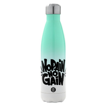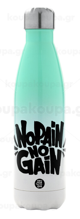 No pain no gain, Metal mug thermos Green/White (Stainless steel), double wall, 500ml