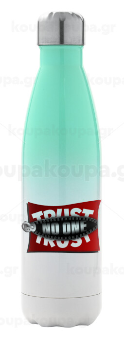 Trust no one... (zipper), Metal mug thermos Green/White (Stainless steel), double wall, 500ml