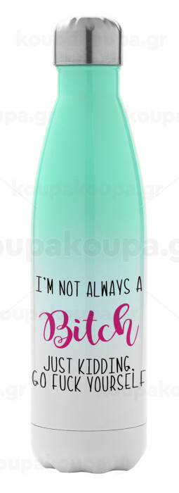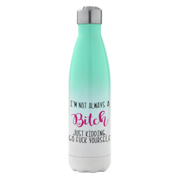 I'm not always a bitch, just kidding go f..k yourself , Metal mug thermos Green/White (Stainless steel), double wall, 500ml