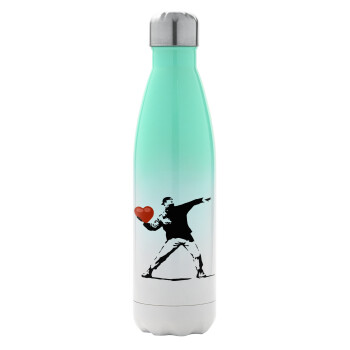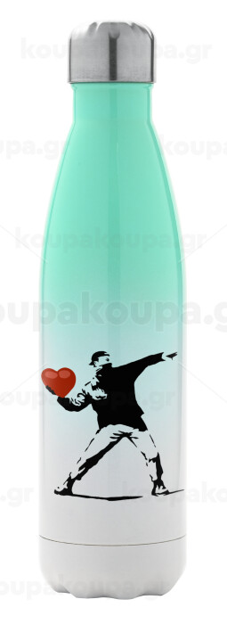 Banksy (The heart thrower), Metal mug thermos Green/White (Stainless steel), double wall, 500ml