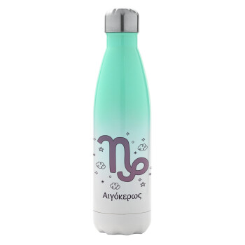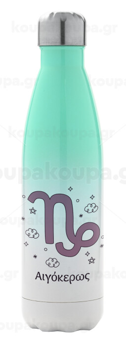 Ζώδια Αιγόκερως, Metal mug thermos Green/White (Stainless steel), double wall, 500ml