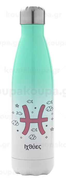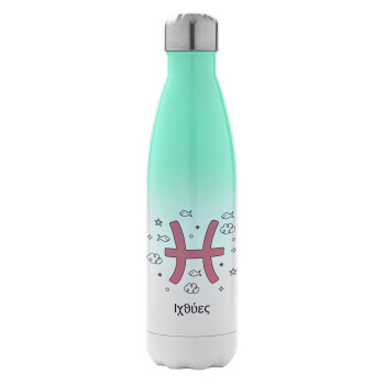 Ζώδια Ιχθύες, Metal mug thermos Green/White (Stainless steel), double wall, 500ml