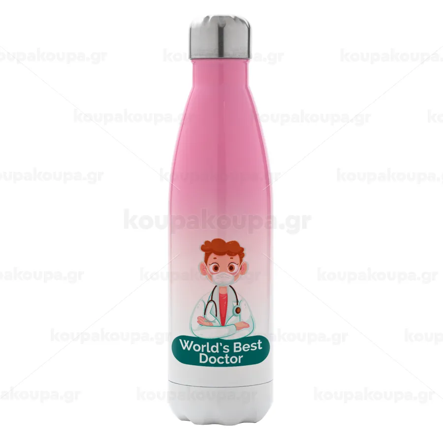 World's Best Doctor, Metal mug thermos Pink/White (Stainless steel), double wall, 500ml