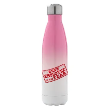 Best employee of the year, Metal mug thermos Pink/White (Stainless steel), double wall, 500ml