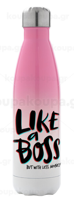 Like a boss, but with less money!!!, Metal mug thermos Pink/White (Stainless steel), double wall, 500ml