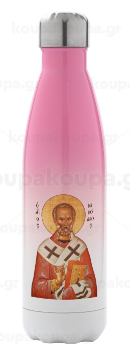 Saint Nicholas orthodox , Metal mug thermos Pink/White (Stainless steel), double wall, 500ml