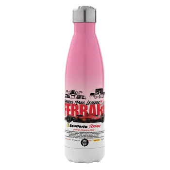 F1 Ferrari, Metal mug thermos Pink/White (Stainless steel), double wall, 500ml