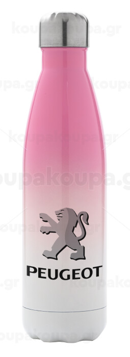 Peugeot, Metal mug thermos Pink/White (Stainless steel), double wall, 500ml