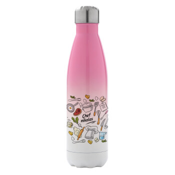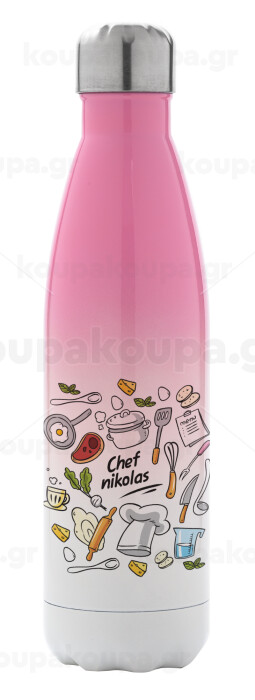 Chef με όνομα, Metal mug thermos Pink/White (Stainless steel), double wall, 500ml