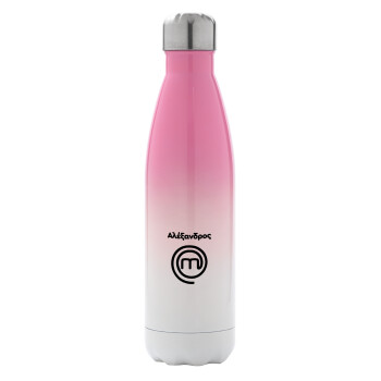 Master Chef Greece, Metal mug thermos Pink/White (Stainless steel), double wall, 500ml