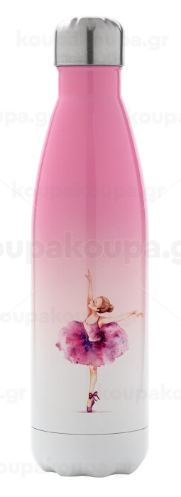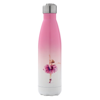 Ballerina watercolor, Metal mug thermos Pink/White (Stainless steel), double wall, 500ml
