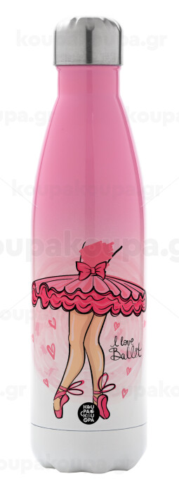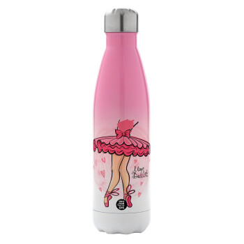 I Love Ballet, Metal mug thermos Pink/White (Stainless steel), double wall, 500ml