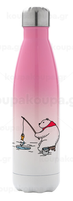 Bear fishing, Metal mug thermos Pink/White (Stainless steel), double wall, 500ml