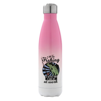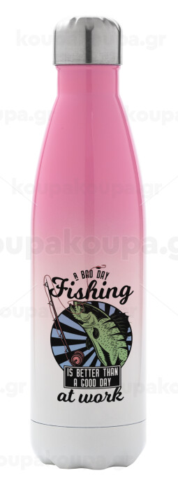 A bad day FISHING is better than a good day at work, Metal mug thermos Pink/White (Stainless steel), double wall, 500ml
