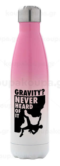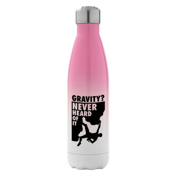 Gravity? Never heard of that!, Metal mug thermos Pink/White (Stainless steel), double wall, 500ml