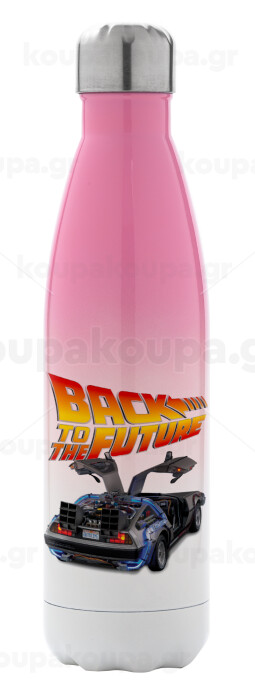 Back to the future, Metal mug thermos Pink/White (Stainless steel), double wall, 500ml