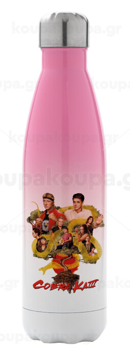Cobra Kai tree, Metal mug thermos Pink/White (Stainless steel), double wall, 500ml
