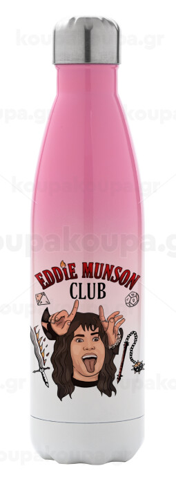 Eddie Munson, Hellfire CLub, Stranger Things, Metal mug thermos Pink/White (Stainless steel), double wall, 500ml