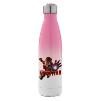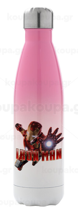 Ironman, Metal mug thermos Pink/White (Stainless steel), double wall, 500ml