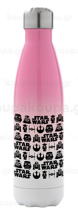 Star Wars Pattern, Metal mug thermos Pink/White (Stainless steel), double wall, 500ml