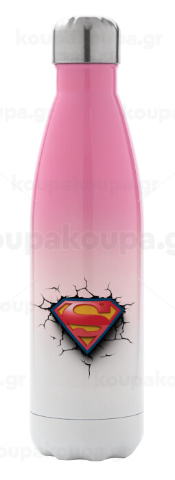Superman cracked, Metal mug thermos Pink/White (Stainless steel), double wall, 500ml