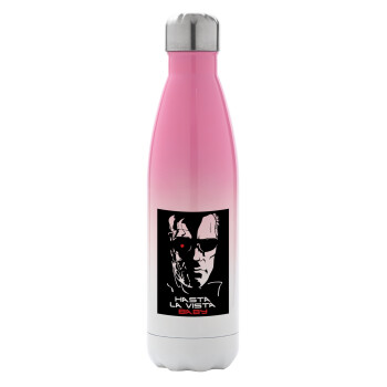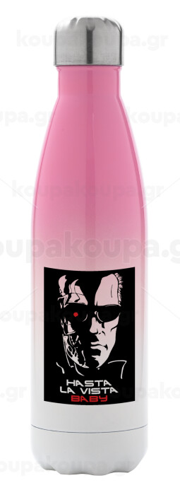 Terminator Hasta La Vista, Metal mug thermos Pink/White (Stainless steel), double wall, 500ml